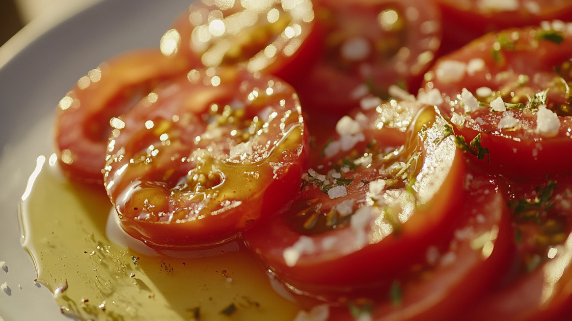 - 토마토를 슬라이스한 후 소금 한 꼬집 + 꿀 한 작은술을 뿌려보세요!