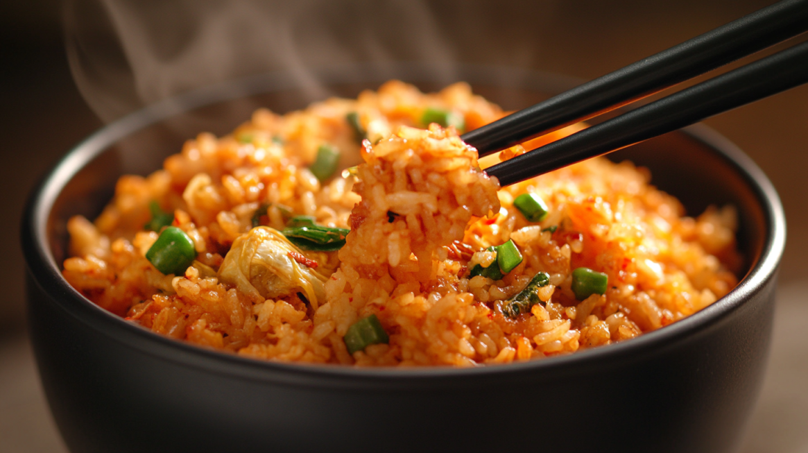 ✅ 재료: 밥 1공기, 김치 1/2컵, 참기름 1작은술, 달걀 1개