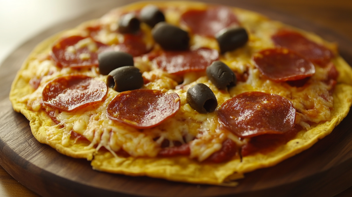 ✅ 재료: 또띠아 1장, 피자소스 2큰술, 모짜렐라 치즈 1/2컵, 올리브 2~3개(선택), 페퍼로니 3~4장(선택)