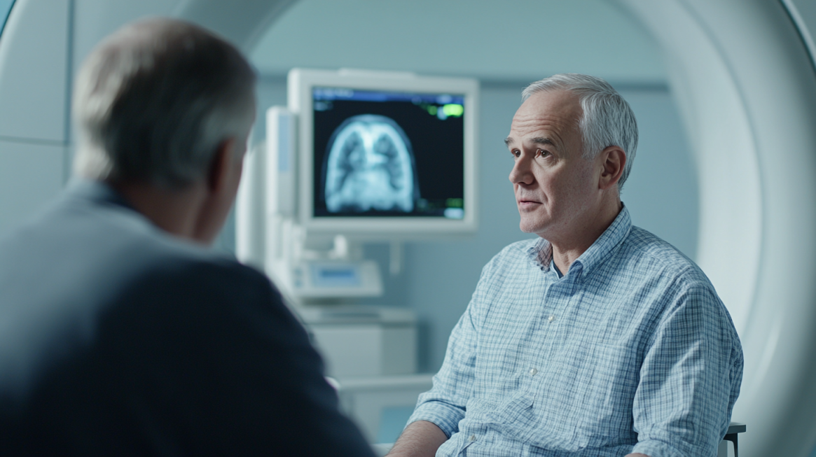 • 초기 증상: 갑작스러운 언어 장애로 응급실 방문 → 뇌 전이 없음 확인