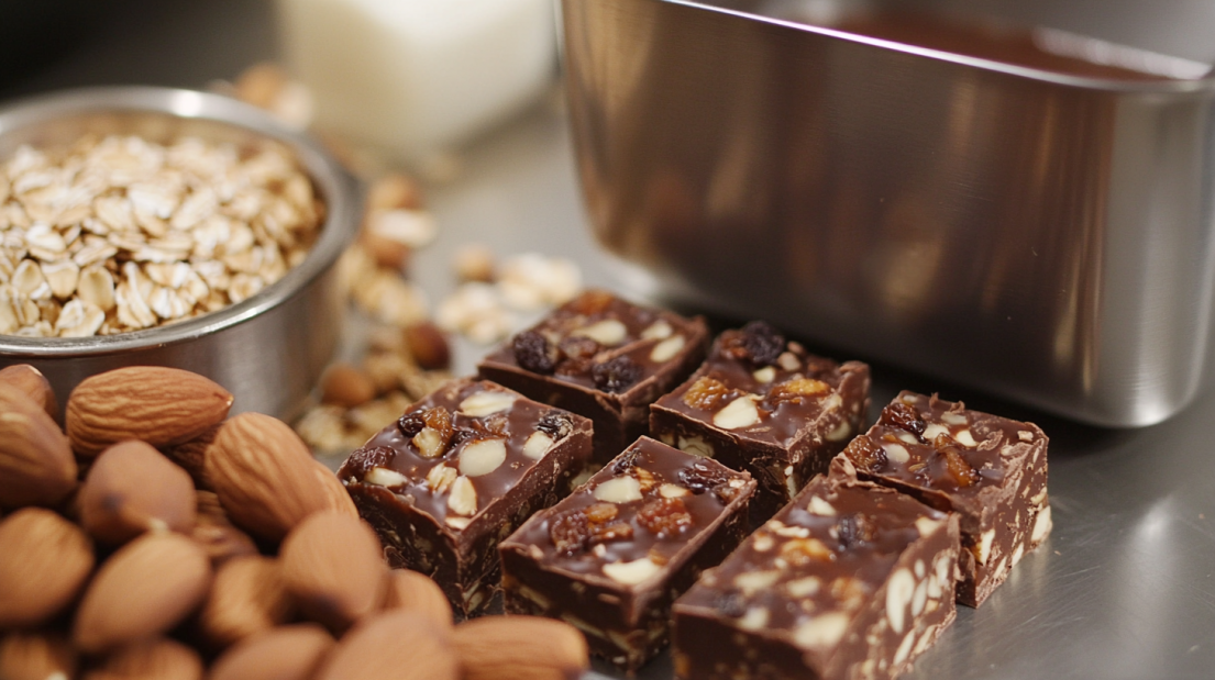 - 녹인 초콜릿과 꿀을 견과류, 오트밀, 말린 과일과 함께 섞는다.
